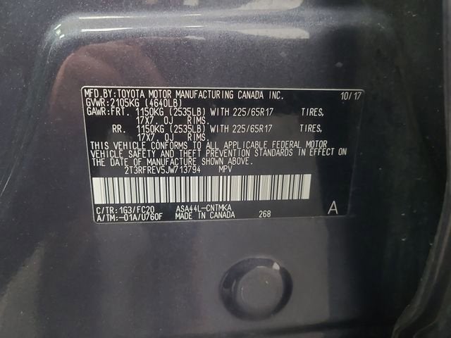 Gray 2018 Toyota RAV4 AWD 6-Speed Automatic 2.5L 4-Cylinder DOHC Dual VVT-i AWD.